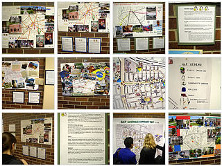 All kinds of individuals, young and old, mapped out on poster board some things that they identified with, liked, disliked, or perhaps just wanted to share with others. There were old photos from the Blizzard of ā79 and of mom-and-pop stores driven out of business by regional retailers; news articles and notes. These were connected with colorful string or pipe cleaners to their geographical locations on base maps of Somerville.