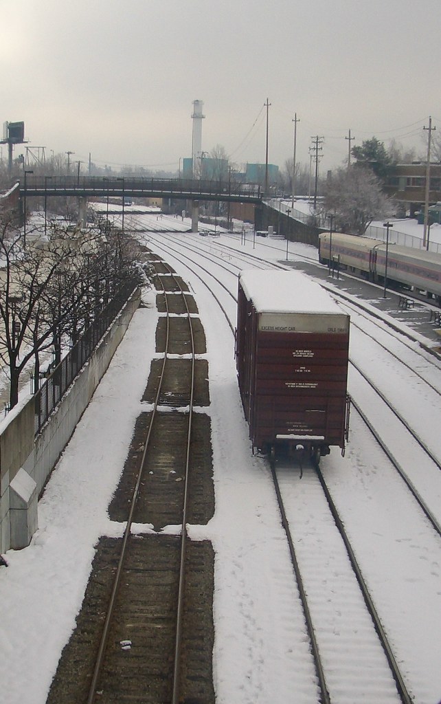 I commute by train to work every morning. Normally in Lowell the siderails are filled with boxcars. This morning they had left, but not without leaving evidence.